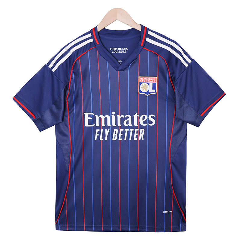 The away edition jersey for the 2025-2026 season features a sleek, modern design that embodies the spirit of Lyon. Crafted with a dynamic color scheme that contrasts with the home kit, this jersey is both eye-catching and timeless. The minimalist yet bold patterns reflect the energy and determination of the team, making it a must-have for every dedicated supporter. The jersey is engineered with precision detailing, including subtle tonal graphics and strategically placed accents that enhance its visual appeal without overwhelming the design.